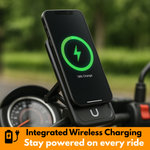 Yes, the holder features a built-in Qi FastCharge™ wireless charging system. Your phone starts charging instantly when mounted, keeping it powered throughout your ride.