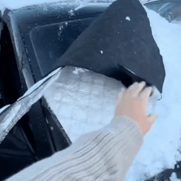In the morning, you remove it, shake it, fold it and store it in the pouch without wetting the inside of the vehicle. Result: a clean, quick and smooth winter routine.