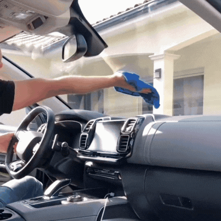 A standard cloth often leaves streaks, cannot reach corners and forces you into uncomfortable positions inside the car.